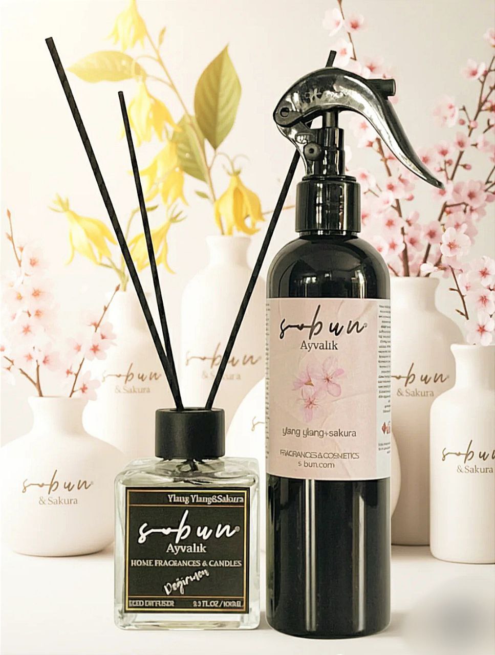 Ylang Ylang ve Sakura’nın büyüleyici kokularını bir araya getiren bu özel bambu çubuklu oda kokusu ile Çamaşır ve Oda Spreyi, yaşam alanlarınıza doğanın zarafetini ve huzurunu getiriyor. 100 ml şık şişesi ve 250 ml spreyi ile hem dekoratif hem de işlevsel bir kullanım sunan bu ürün, her kullanımda ferahlatıcı ve rahatlatıcı bir atmosfer yaratır.